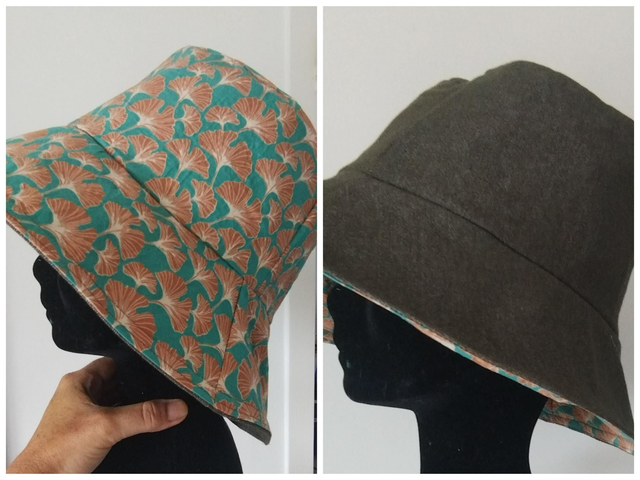 Bob réversible jeans fleurs ginkgo kaki
