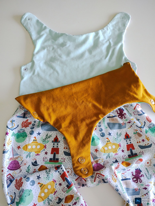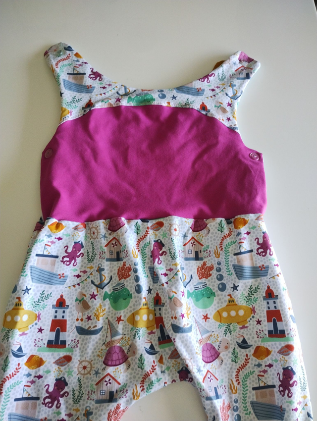 Combinaison confortable, et facile à enfiler. Bretelles avec pressions.