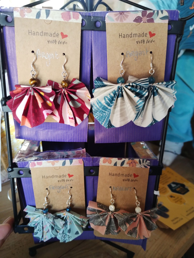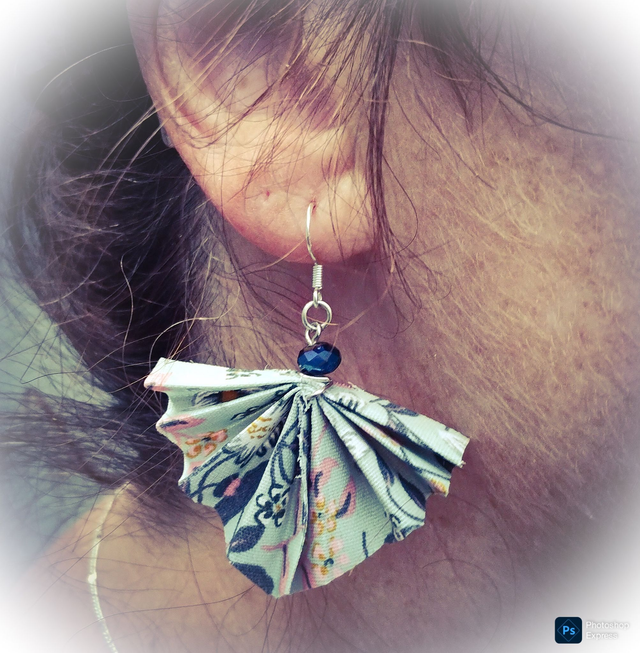 Éventail en coton enduit monté sur perles en pierre naturelle