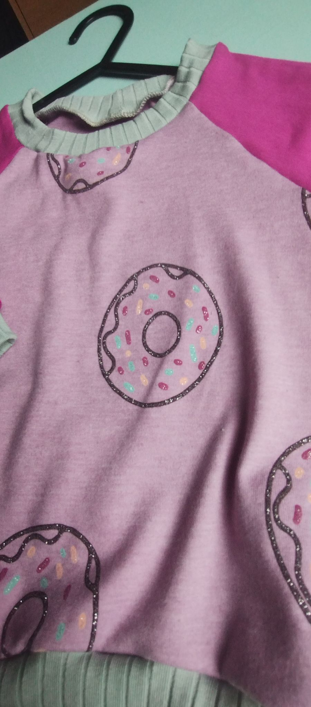 Tee shirt manche raglan imprimé "DONUTS" 🍩 à paillettes sur fond rose violet parme
