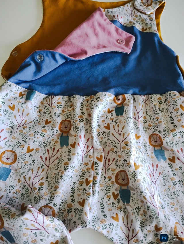 Combinaison confortable, et facile à enfiler. Bretelles avec pressions.
