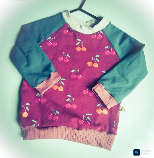 Tee-shirt manches raglan imprimé cerise 🍒 paillettes devant et panda 🐼 arrière