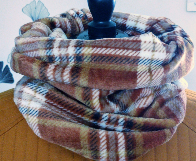 Snood confortable et chaud, se passe par la tête et couvrant bien le cou et le nez, extensible. Effet croisé pour plus de tenue et d'aisance
